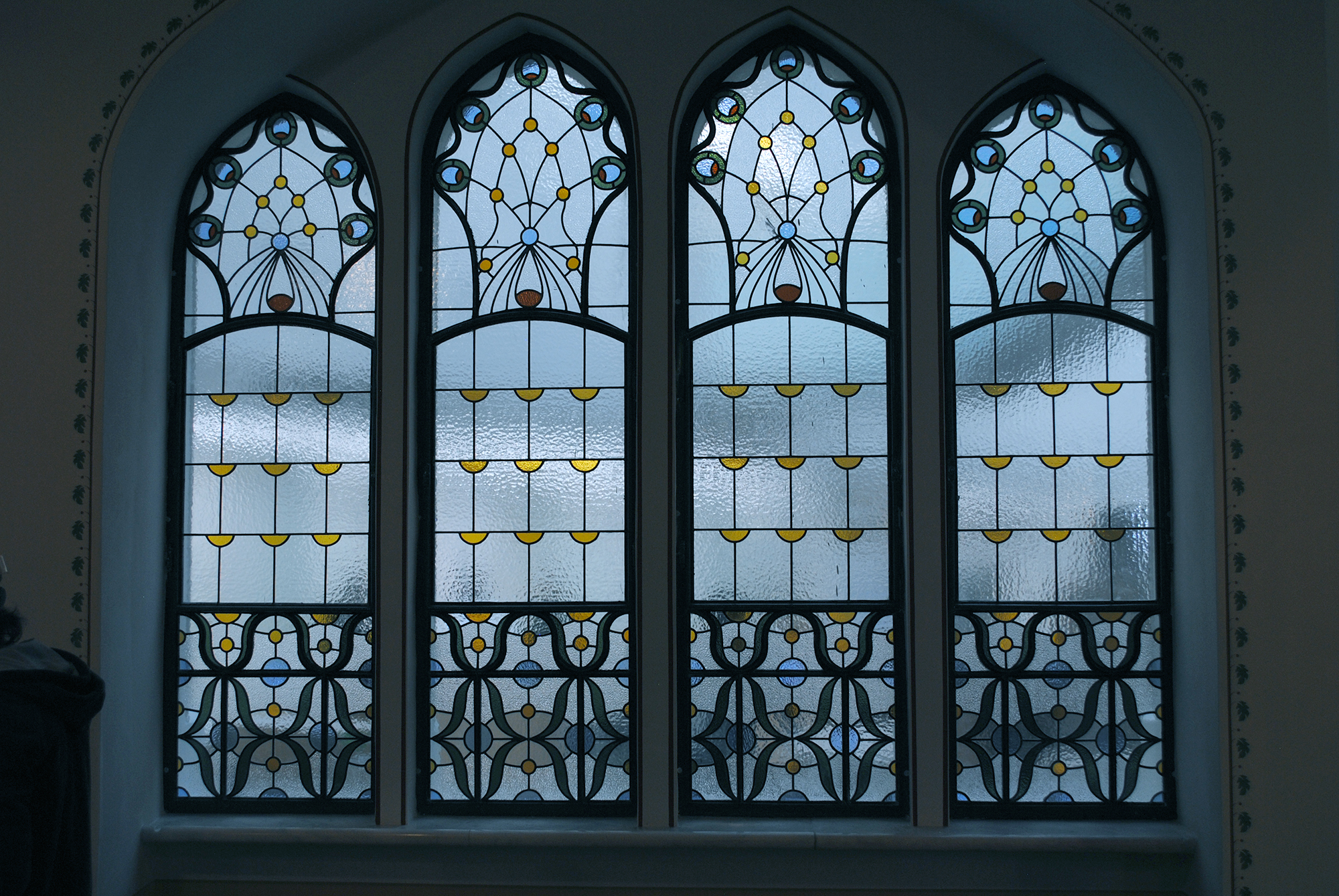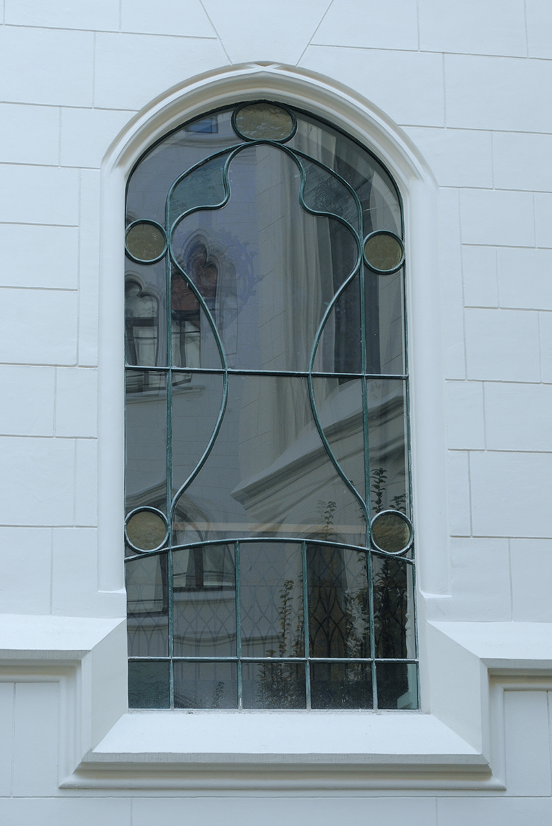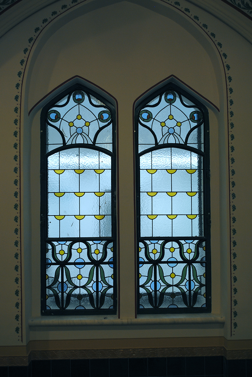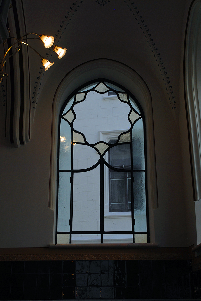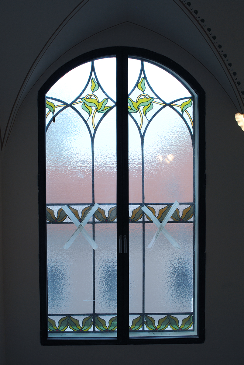 Lépcsőházak ólomüvegei és osztott színes, ablakai