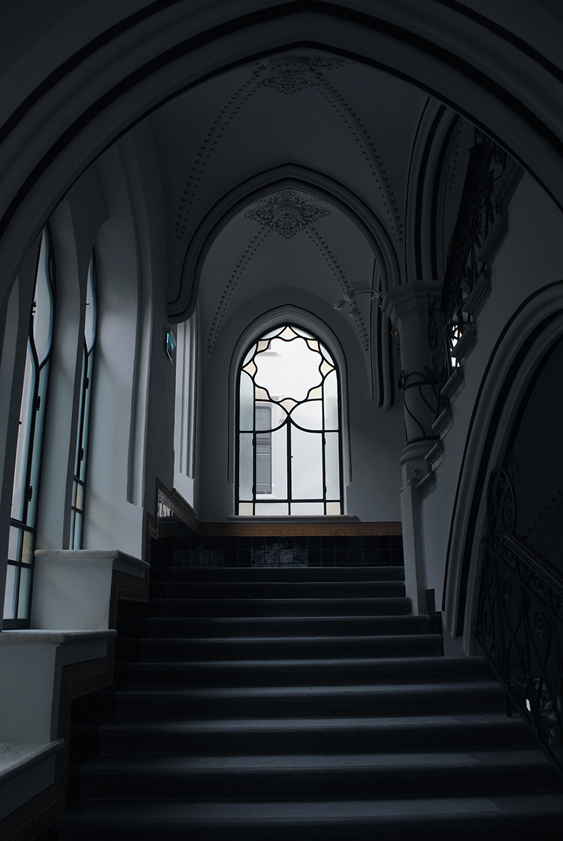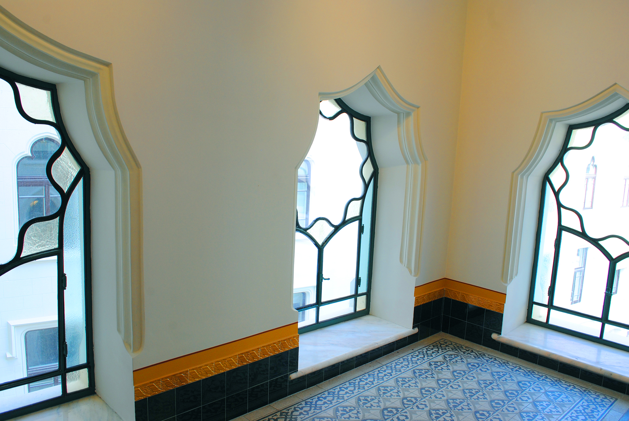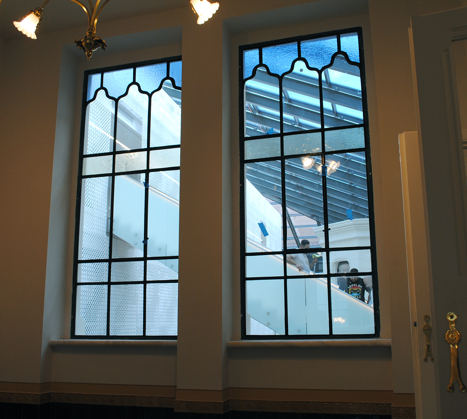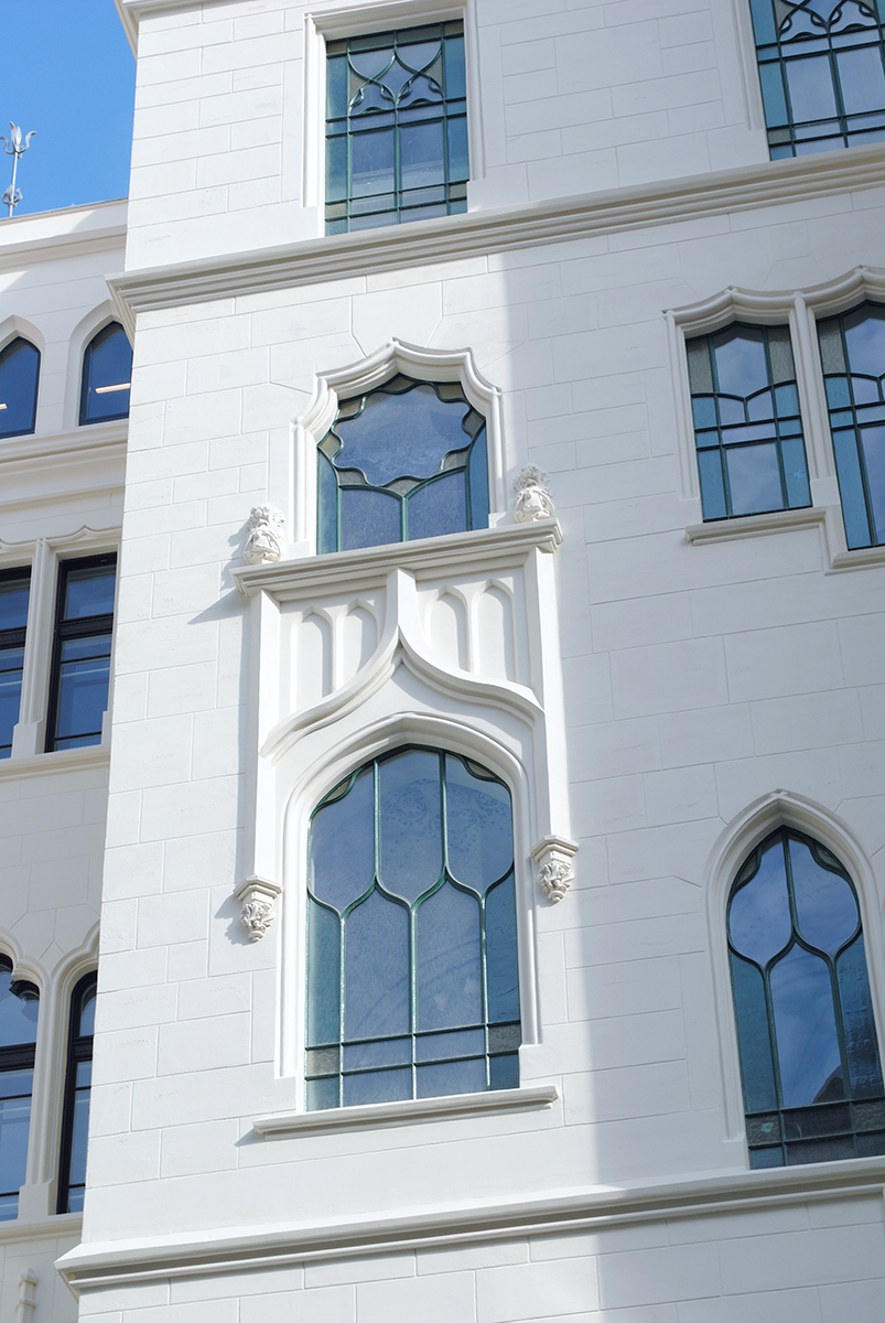 Lépcsőházak ólomüvegei és osztott színes, ablakai
