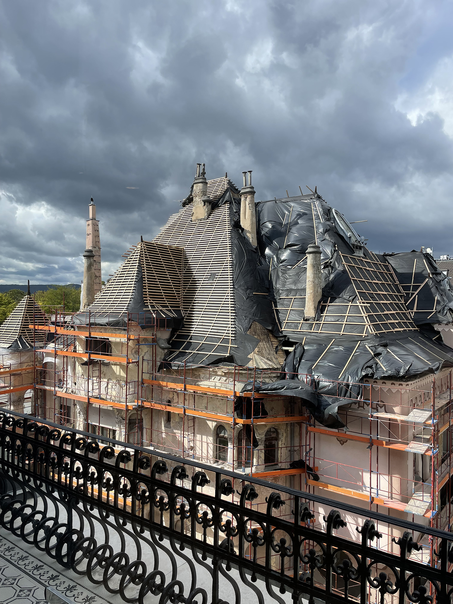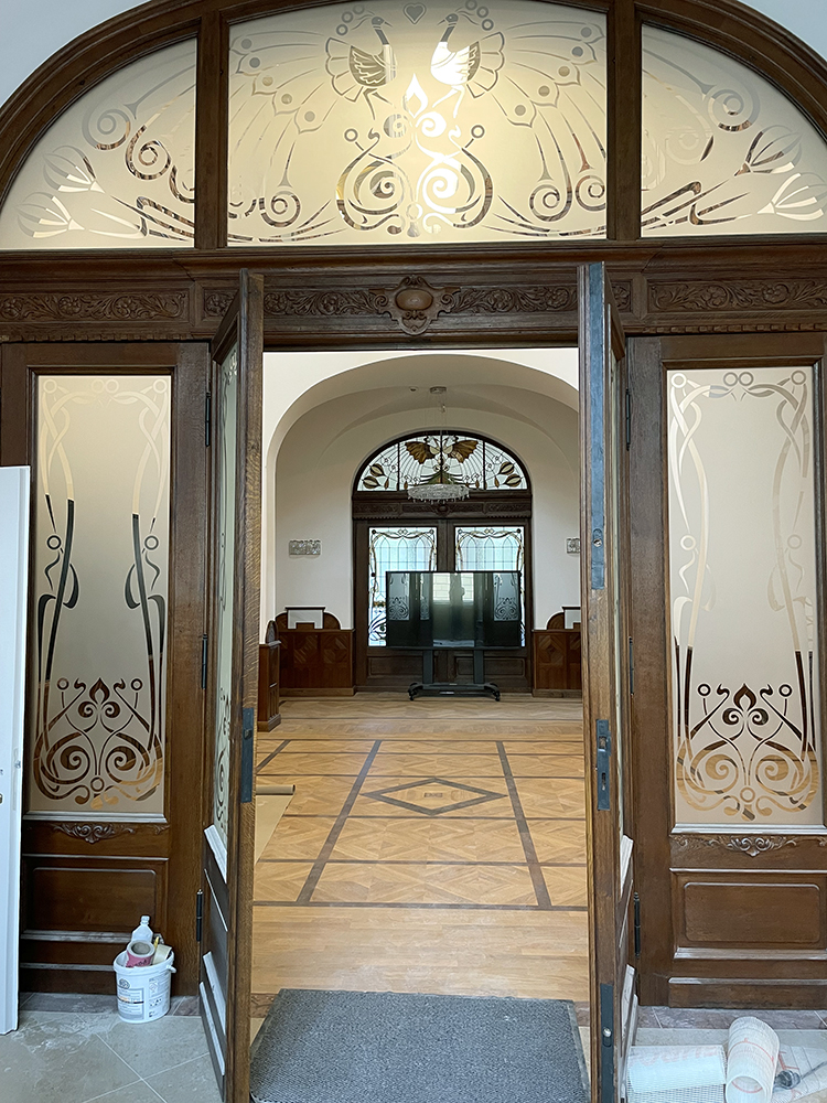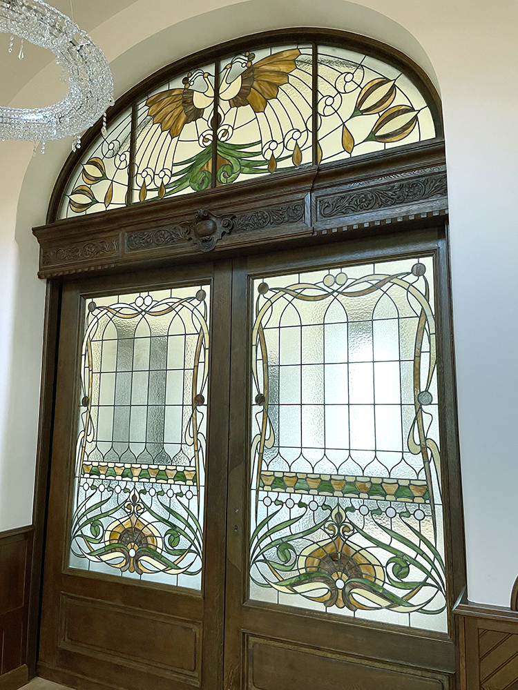 A Róheim kereskedőcsalád számára épült villát Pollák Manó tervezte, és 1900-ban készült el. A villa történetének nevezetessége, hogy az épületben gyikolták meg gróf Tisza István volt miniszterelnököt 1918-ban. Az államosítás után a villa különböző funkciókat töltött be, a 2000-es évekre az összeomlás szélére jutott. Az épület rekonstrukciója az új tulajdonos, a Magyar Korvin-lánc Testület megbízásából 2018-ban kezdődött, és 2023-ban fejeződött be. Sajnos nem tudjuk, hogy a gazdag reneszánsz és mór ornamentikát felvonultató belső díszítést, illetve a villa ólomüvegeit kik készítették, és sajnos az elpusztult üvegekről teljes fénykép sem maradt fenn. Miközben a dolgozószoba tolóajtajának ólomüveges betéteit rekonstruáltuk, egy a korabeli lapokban megjelent rendőrségi fénykép alapján kezdtünk dolgozni, mely a Tisza-gyilkosság helyszínét mutatja, mivel a merénylet pontosan az ajtó előtt történt.
