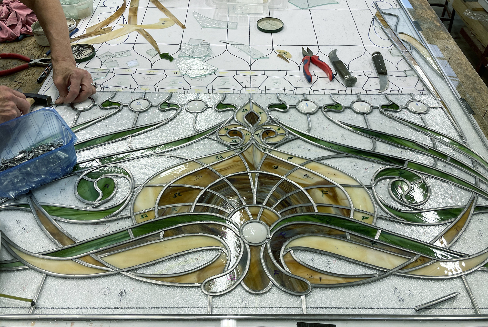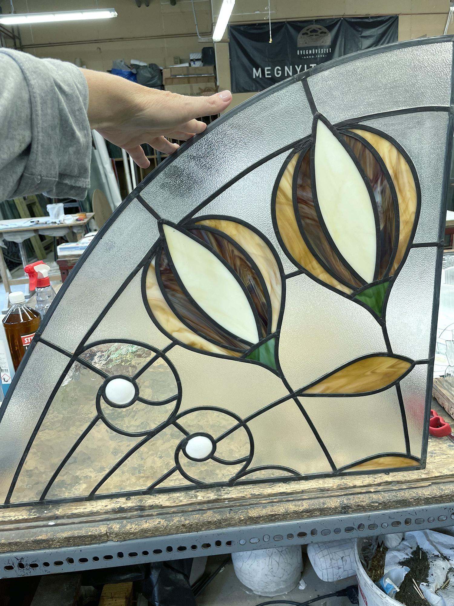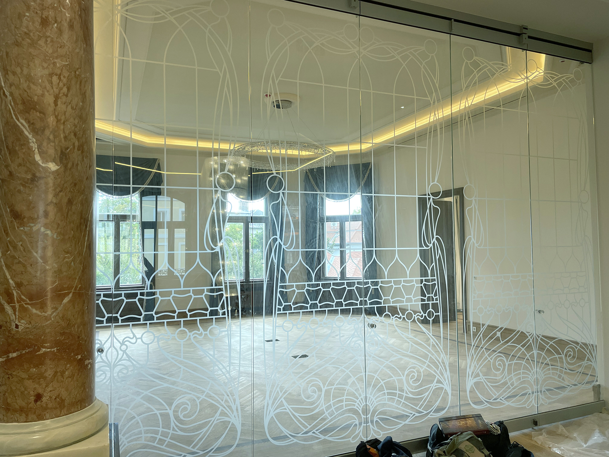 A Róheim kereskedőcsalád számára épült villát Pollák Manó tervezte, és 1900-ban készült el. A villa történetének nevezetessége, hogy az épületben gyikolták meg gróf Tisza István volt miniszterelnököt 1918-ban. Az államosítás után a villa különböző funkciókat töltött be, a 2000-es évekre az összeomlás szélére jutott. Az épület rekonstrukciója az új tulajdonos, a Magyar Korvin-lánc Testület megbízásából 2018-ban kezdődött, és 2023-ban fejeződött be. Sajnos nem tudjuk, hogy a gazdag reneszánsz és mór ornamentikát felvonultató belső díszítést, illetve a villa ólomüvegeit kik készítették, és sajnos az elpusztult üvegekről teljes fénykép sem maradt fenn. Miközben a dolgozószoba tolóajtajának ólomüveges betéteit rekonstruáltuk, egy a korabeli lapokban megjelent rendőrségi fénykép alapján kezdtünk dolgozni, mely a Tisza-gyilkosság helyszínét mutatja, mivel a merénylet pontosan az ajtó előtt történt.